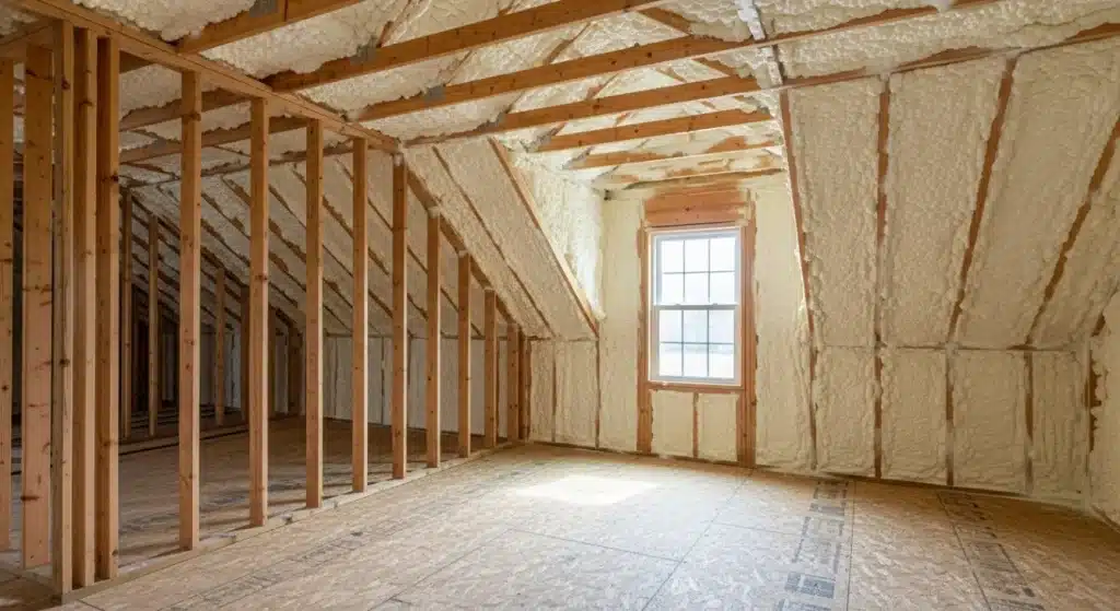 Combine spray foam with proper attic venting for best results in mixed climates.